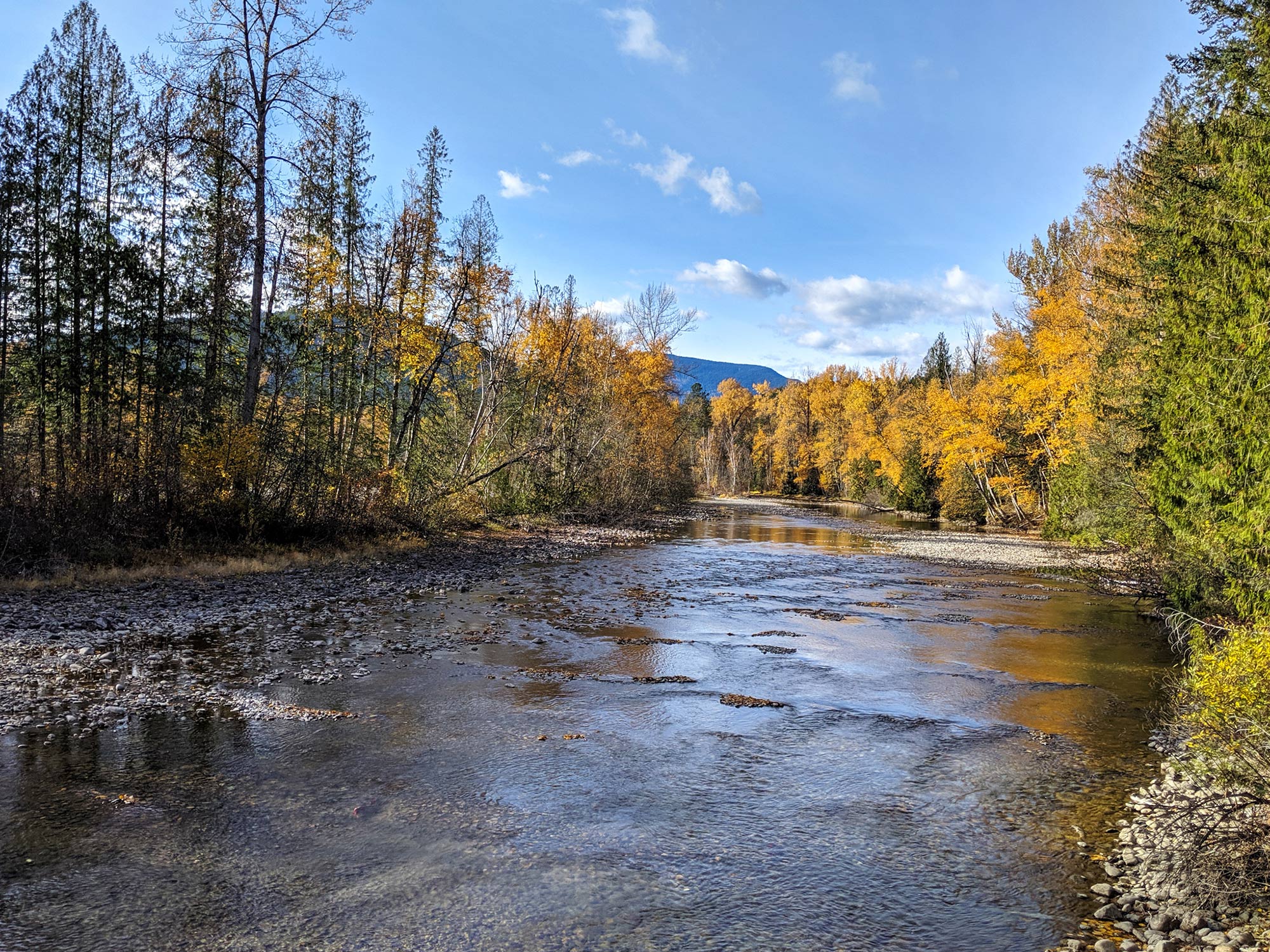 The Adams River salmon run happens in early October each year. In a peak year, millions of salmon make their way up the Fraser River, past Kamloops, and to the Adams River in the Shuswap. 2019 was supposed to be a sub-dominant year: not quite as many as a peak year, but still impressive. We were at the end of October, so we must have missed it. Shrugging, we decided to make the most of the beautiful afternoon and take a walk through the golden forest of cottonwoods.